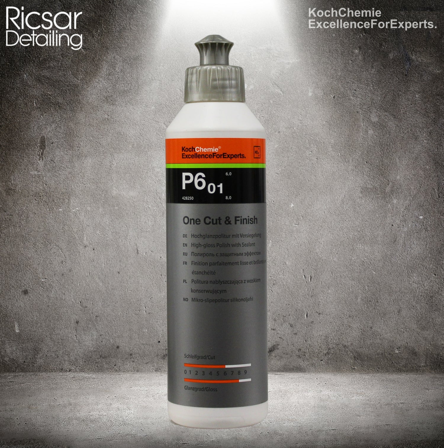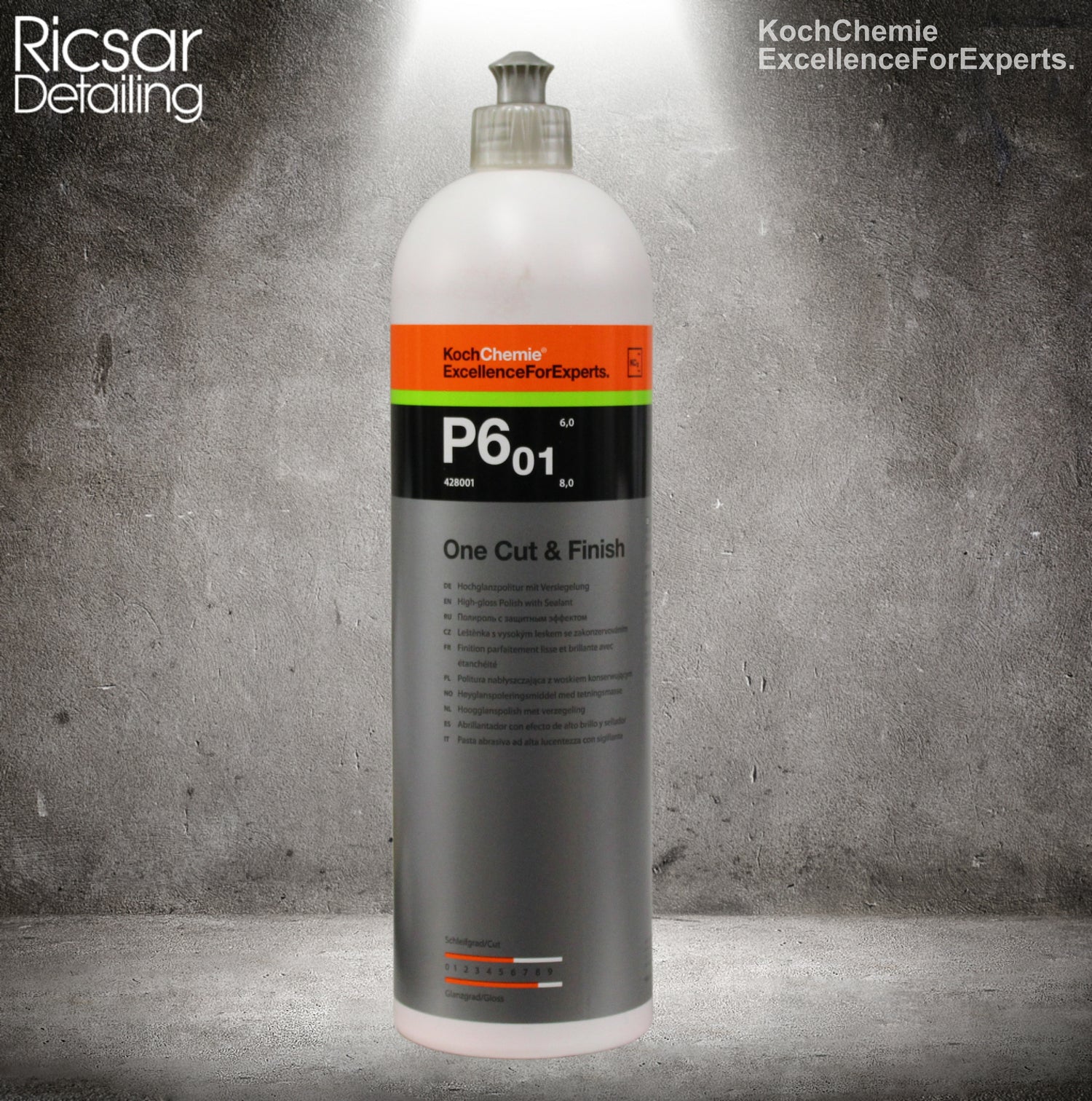 Koch Chemie One Cut & Finish P6.01 is available in a 1lt and 250ml bottle and is a high gloss polish with the added benefit of a hydrophobic sealant. The polish will also remove micro scratches up to 2000g in the surface of the paint when in use leaving a highly polished finish with a coating that will protect the painted surface.