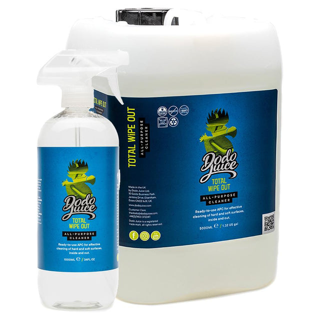 Dodo Juice Total Wipe Out is a powerful all purpose cleaner (APC) designed to clean pretty much anything thrown at it. From upholstery and headlining inside the cabin, engine bays and wheel arches, soft surfaces, hard surfaces... interior, exterior... there is no limit to its versatility.