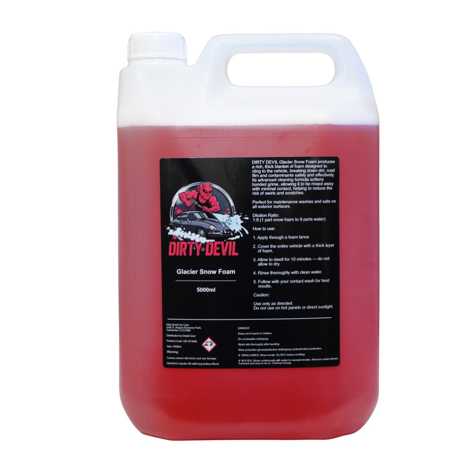 Dirty Devil Glacier Snow Foam is a high-performance, ultra-thick pre-wash snow foam designed to safely and effectively loosen dirt, grime, and road film before contact washing. Its rich, clinging foam blankets your vehicle, lifting contaminants away from the surface to help minimise swirl marks and scratches.