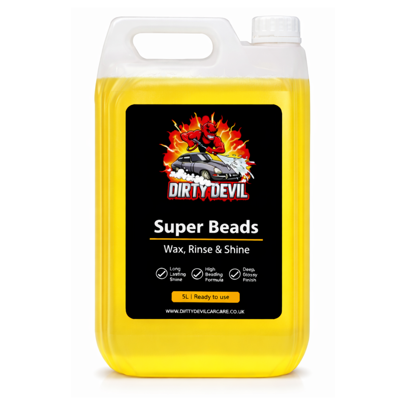 Transform your car care routine with DIRTY DEVIL Super Beads, Wax Rinse & Shine. Don't just wash your car—seal it with a professional-grade finish that lasts. This premium wax spray and rinse treatment is the ultimate "cheat code" for enthusiasts who want extreme gloss, enhanced paint protection, and unbeatable water beading without the hours of manual labor.